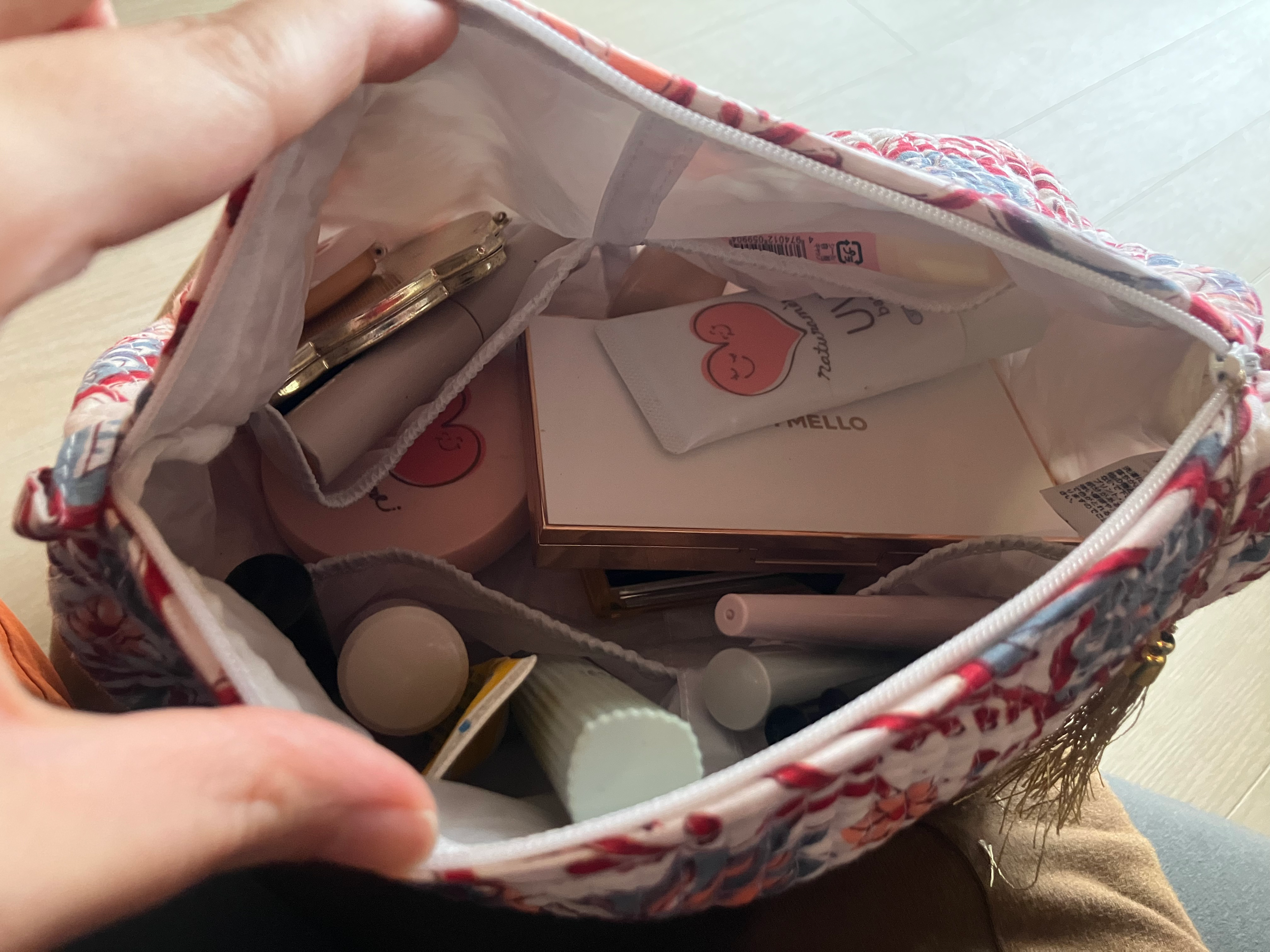 サイズが大きめなので、コスメだけじゃなく化粧水やスキンケアも一緒に入れられるのもいいですね!
